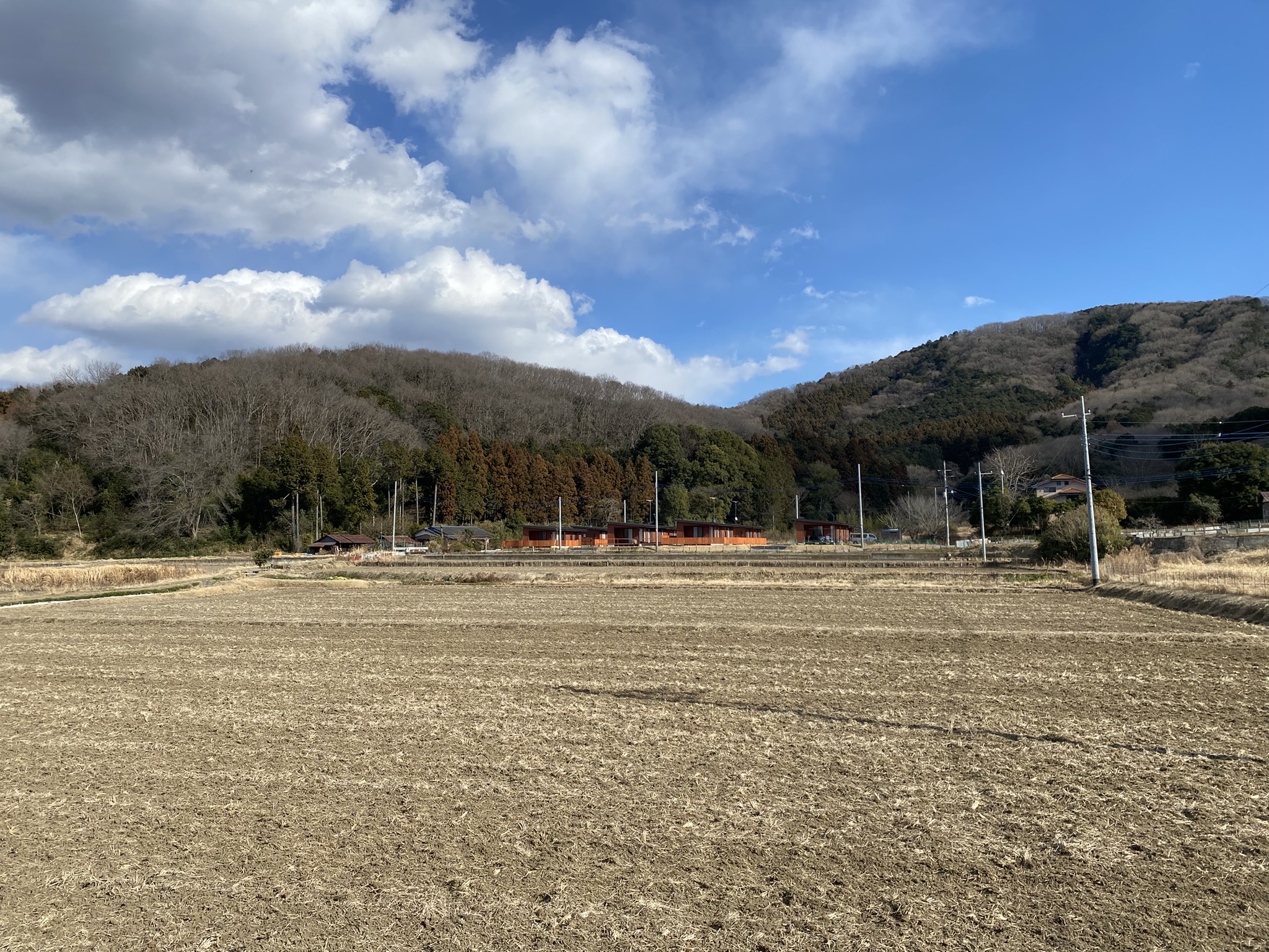 ヤマザクラが見える山の麓という絶好のロケーションに農園が併設された8棟の西洋式住居棟。