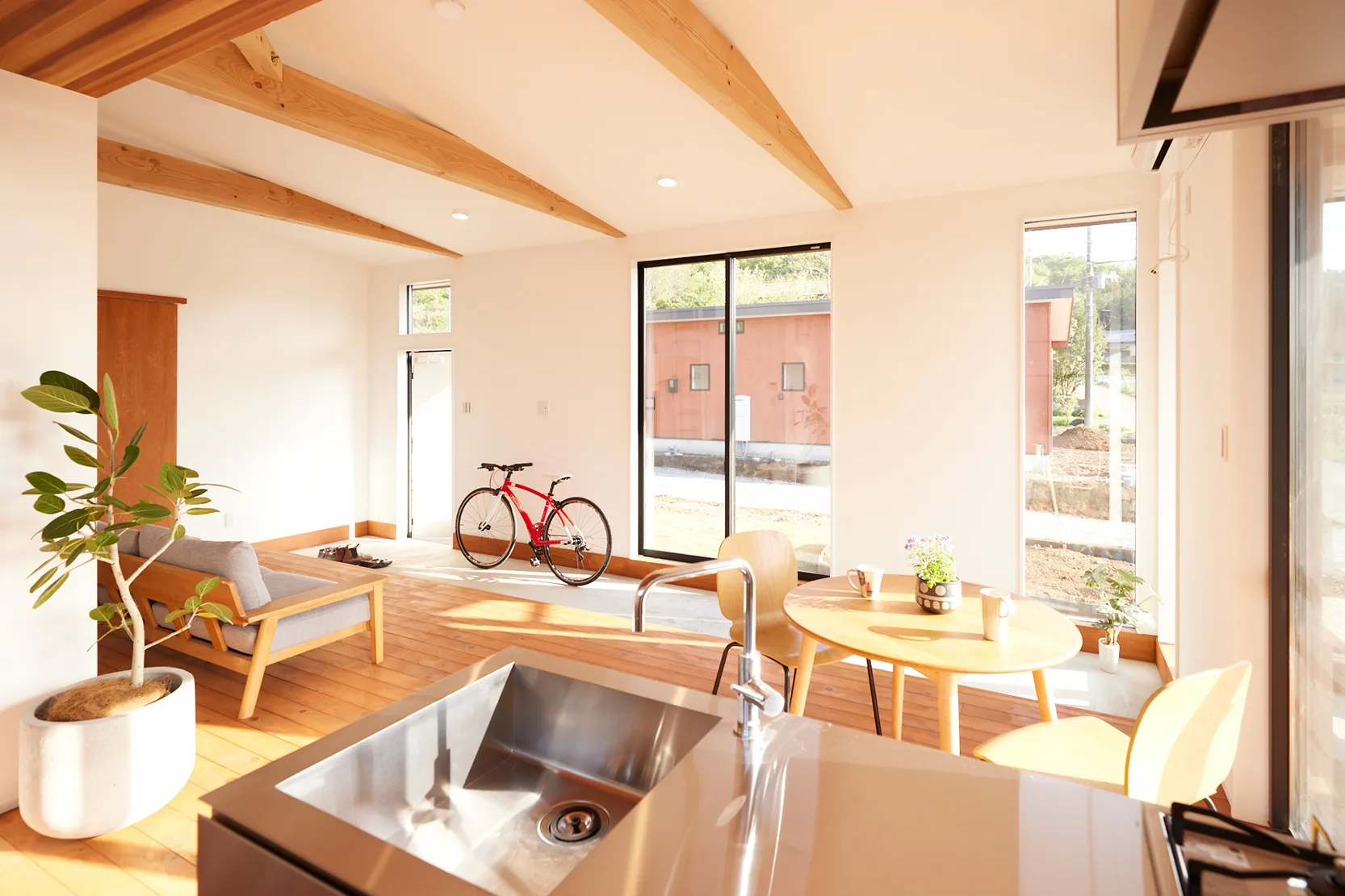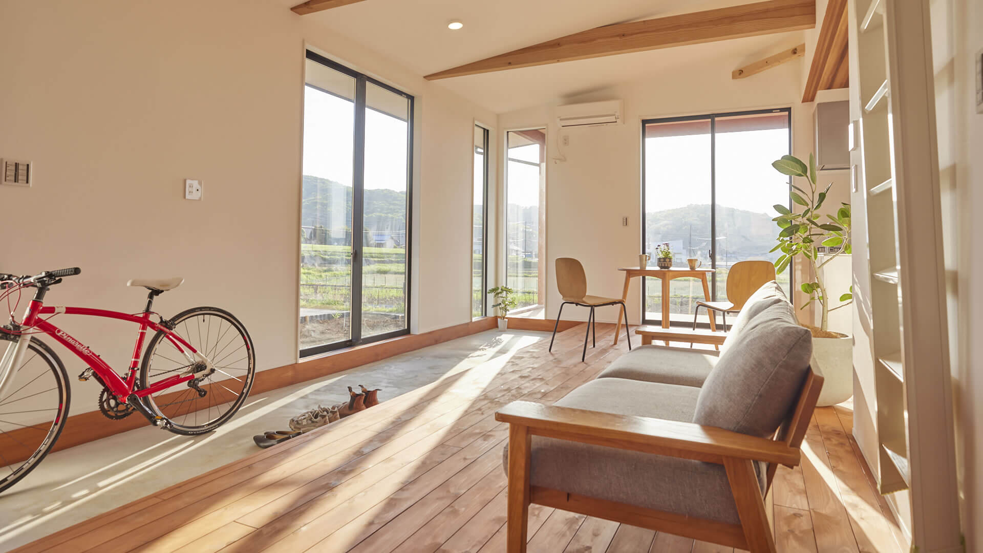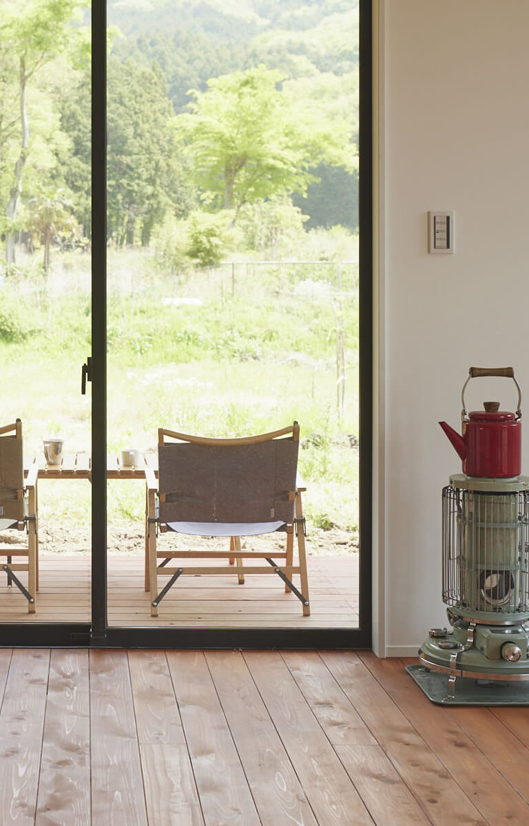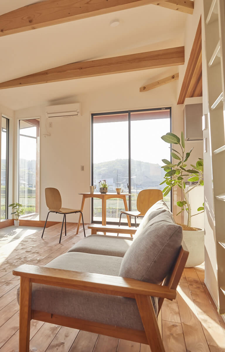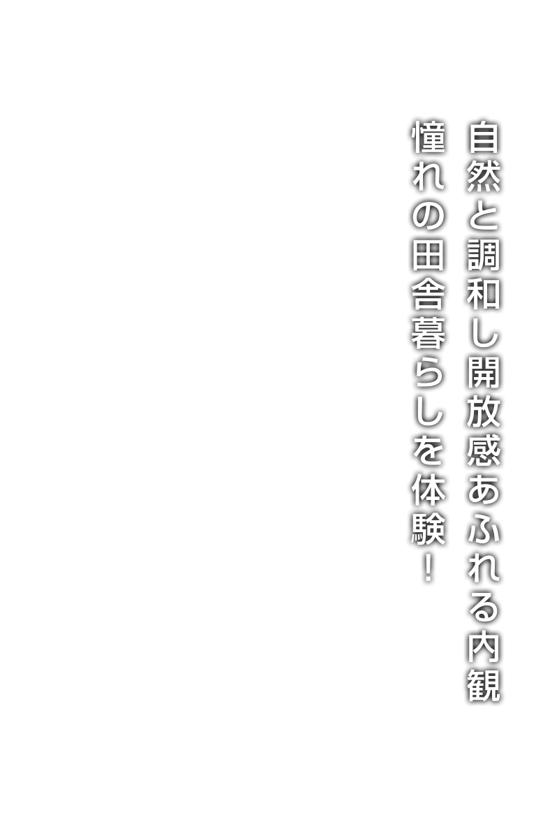 自然と調和し開放感あふれる内観は、憧れの田舎暮らしを体験できます。